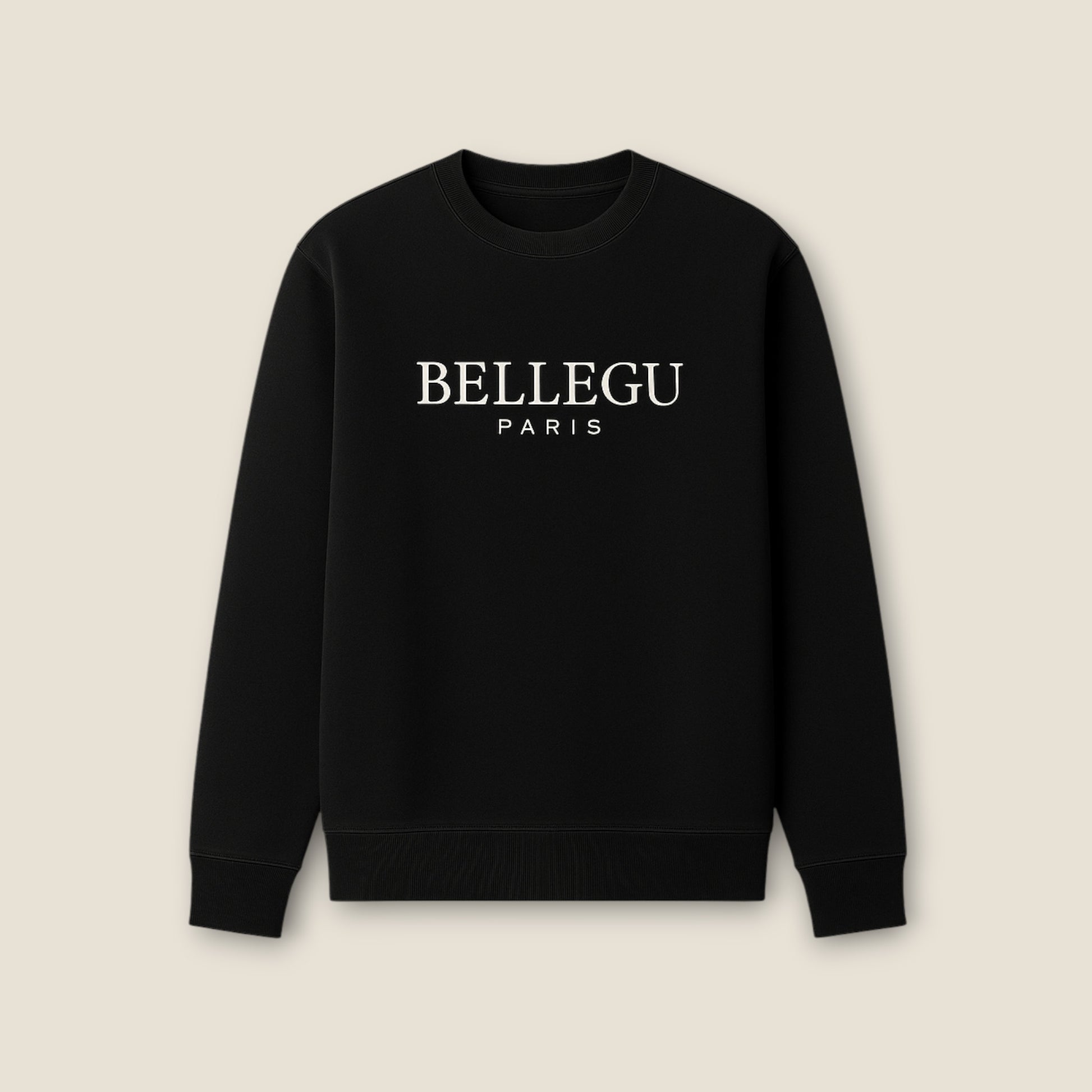 Ein dezentes BELLEGU PARIS-Logo ziert die Brust und verkörpert die Philosophie der Marke: